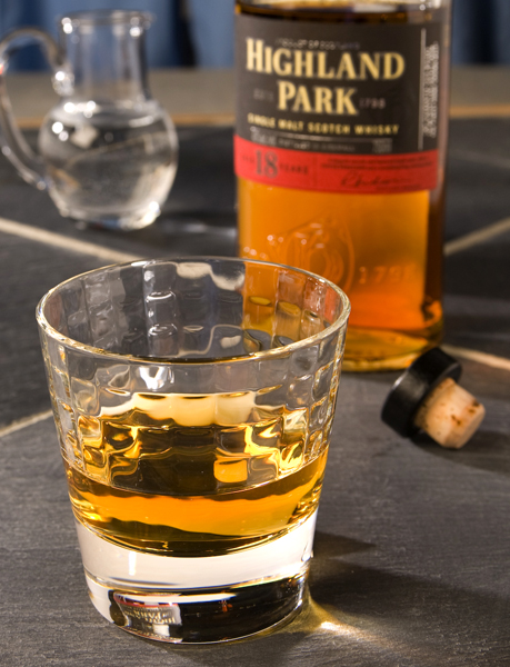 Highland Park 18- Remember that Billy Joel tune “Uptown Girl” ? This classic Orcadian Island Scotch is the embodiment of uppercrust snazzines. It arrives in a stylish flat bottle that makes it stand out from the crowd and hints of something special. The peaty nose suggests a powerful flavor and tasting immediately confirms it. This malt’s slightly nutty and complex flavors seem to “ open” nicely with a few drops of water, swirl and savor for sure. There are toffee overtones in each dram that finally give way to a long smokey finish. Here is a very special scotch that would make a fine gift for a valued friend. Somewhat aristocratic …break out your best glassware for this uptown dandy. Easily a 9+ rating and highly recommended. ( 86 proof )